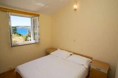 Spavaća soba sa dva ležaja, dnevna soba, kuhinja, kupaonica, balkon sa pogledom na more, klima uređaj, sat/tv, WiFi, aparat za kavu.